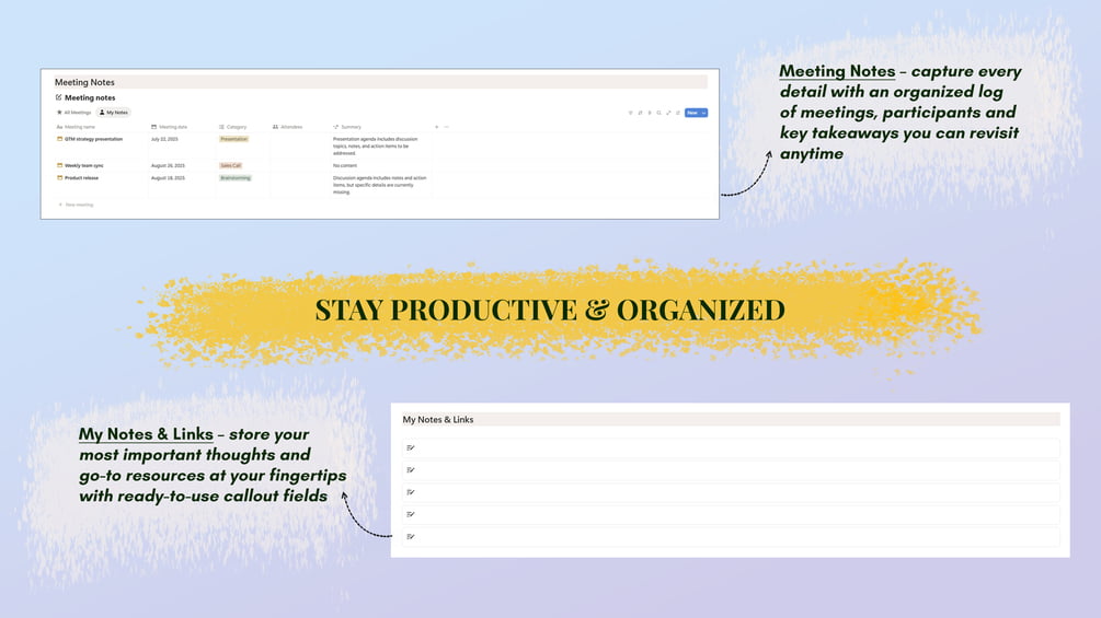 • Meeting Notes Hub – structured notes & ideas