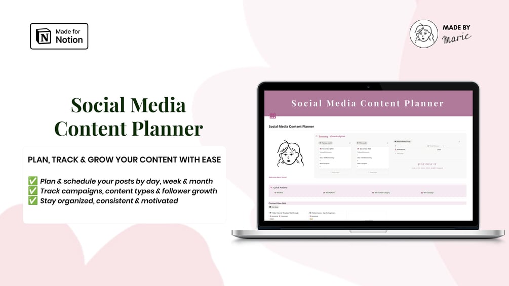 Grab your Social Media Content Planner today and plan, track, and publish with clarity, consistency, and confidence - all in one organized Notion workspace!